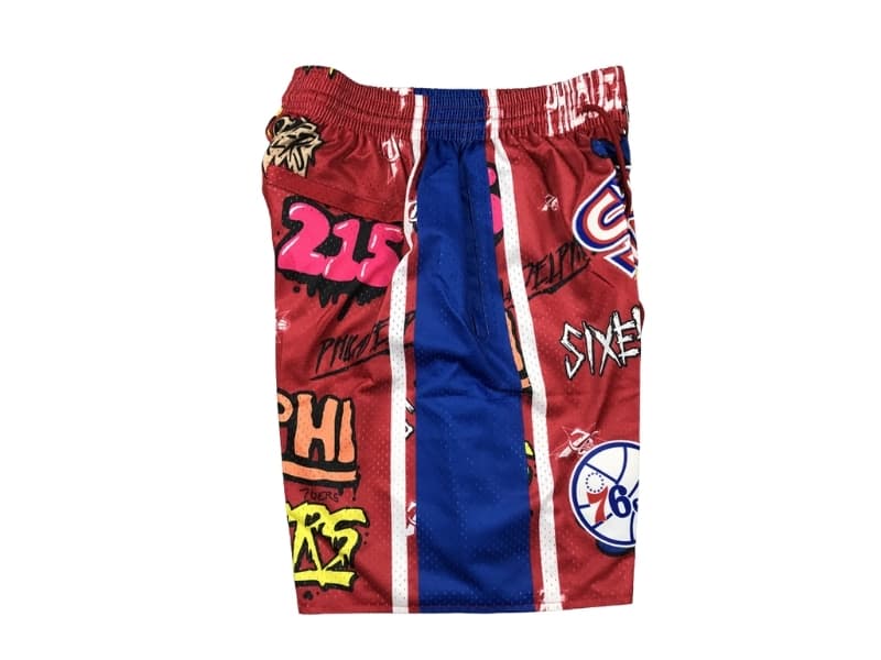 - Team Graphics: Show off your team pride with bold Philadelphia 76ers graphics, including the iconic slap sticker design. The vibrant colors and detailed logo make these shorts a standout piece for any fan.